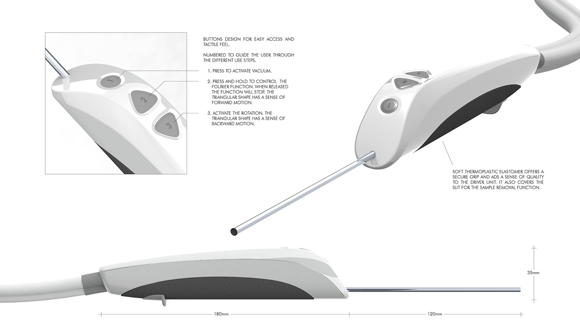 NeoDynamics AB presents a new technology for achieving large histologic samples when performing biopsies that, regardless of needle size and properties of the lesion, makes it possible to precisely place an Ultrasound guided needle in the area from which the diagnostic tissue is to be taken. Our unique driver substitutes the commonly used spring-loaded mechanisms. It enables the physician to precisely and seamlessly maneuver even large diameter needles into the tumor. This is achieved by the physician applying short mechanical energy pulses.